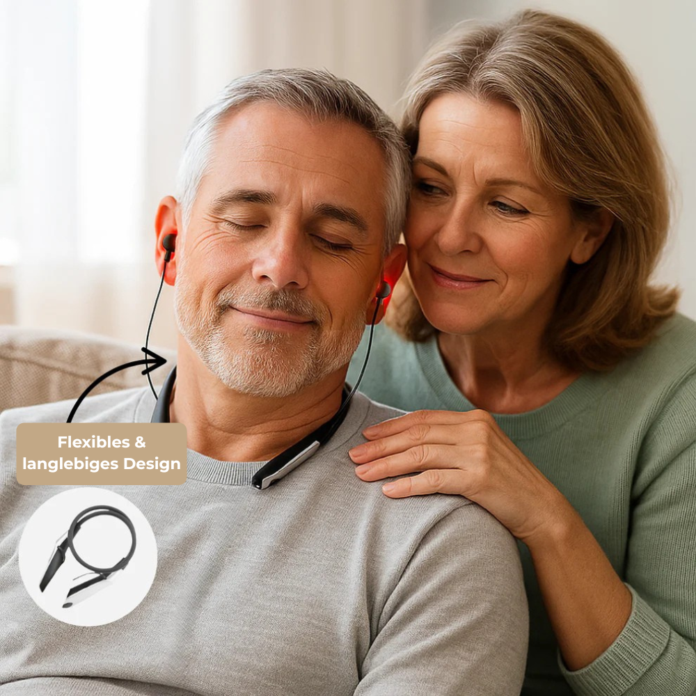 Nur 20 Minuten tägliche Anwendung über vier Wochen können das Hörvermögen deutlich verbessern und langfristig schützen. Die gezielte 650nm Rotlicht-Therapie fördert die Durchblutung, stimuliert die Regeneration geschädigter Haarzellen, die für die Umwandlung von Schall in Nervenimpulse verantwortlich sind, und unterstützt den natürlichen Selbstreinigungsprozess des Innenohrs, um Ablagerungen zu entfernen, die das Hören beeinträchtigen können.