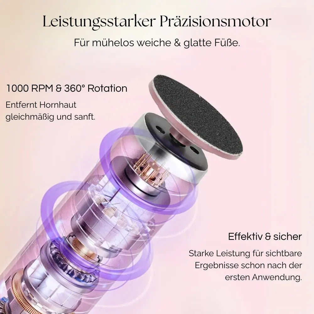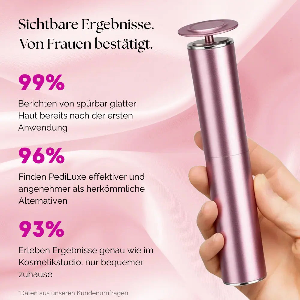 Mit PediLuxe entfernst du mühelos raue Stellen und verwandelst deine Füße in glatte, weiche Haut.