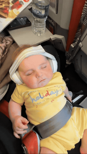 Wir nehmen die Ohrenschützer immer zu Familienfeiern mit. So hört er nichts mehr und kann in Ruhe schlafen.