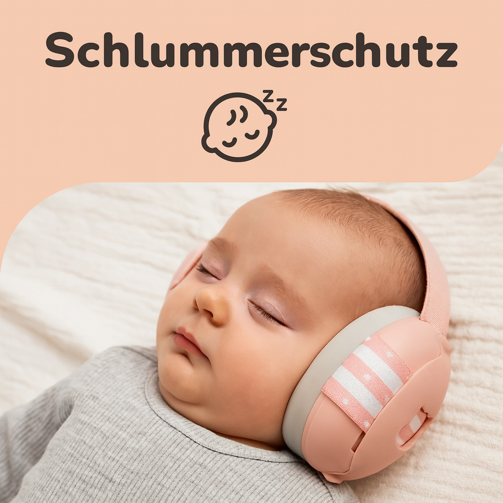 Mit Schlummerschutz findet dein Baby überall Ruhe – die weichen Ohrenschützer dämpfen störenden Lärm um bis zu 25 dB und sorgen für entspannten Schlaf.