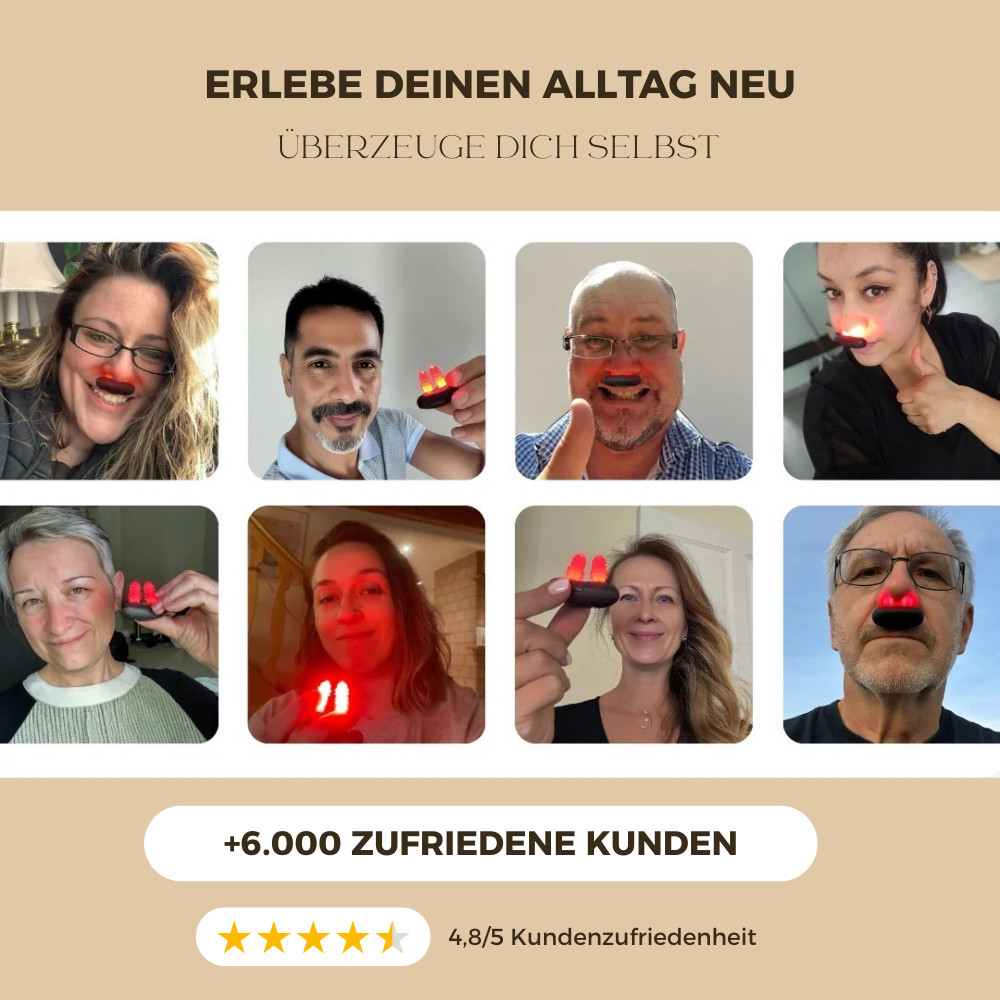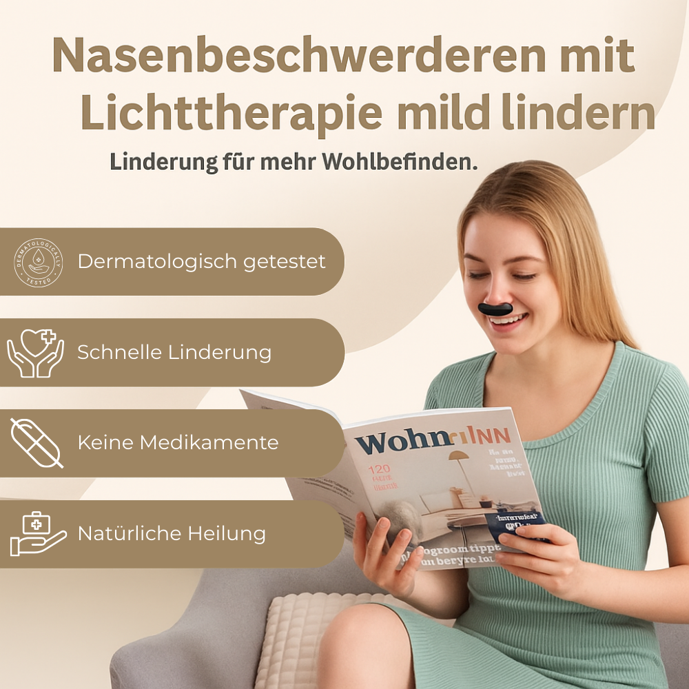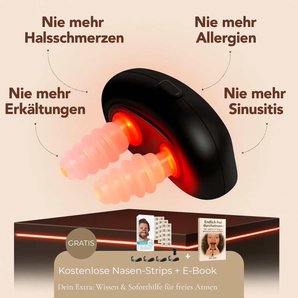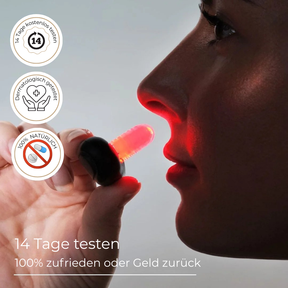 Schon wenige Minuten rotes Licht am Tag stärken deine Nasenschleimhäute, verbessern die Durchblutung und machen es Viren schwer, sich festzusetzen. So atmest du frei, löst Schleim schneller und unterstützt dein Immunsystem – für weniger Kranksein und mehr Energie im Alltag.