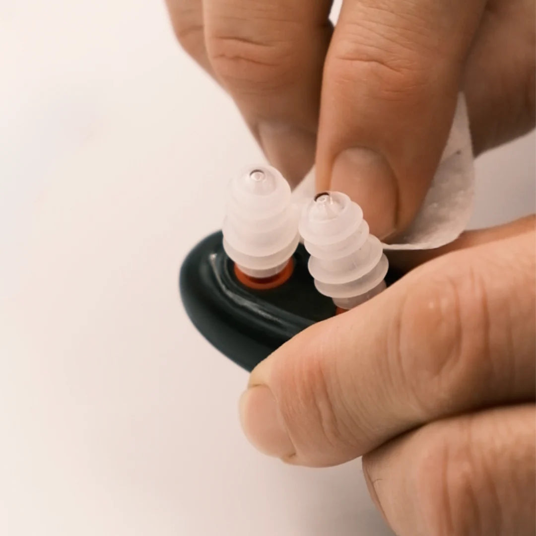 Nach Abschluss der Sitzung empfehlen wir, die Nasendüsen mit einem Desinfektionsmittel zu reinigen.