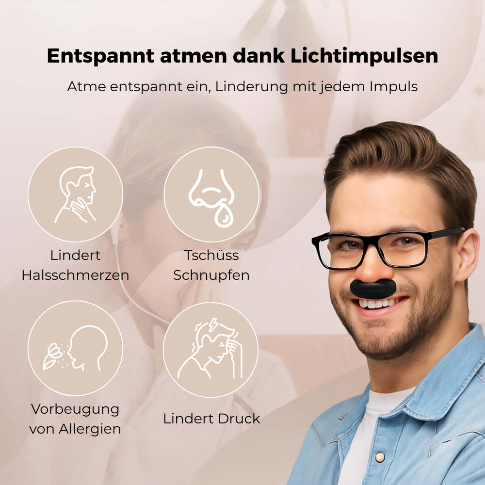 Das sanfte Rotlicht löst Druck, befreit die Atemwege und beruhigt gereizte Schleimhäute – ganz ohne Medikamente.