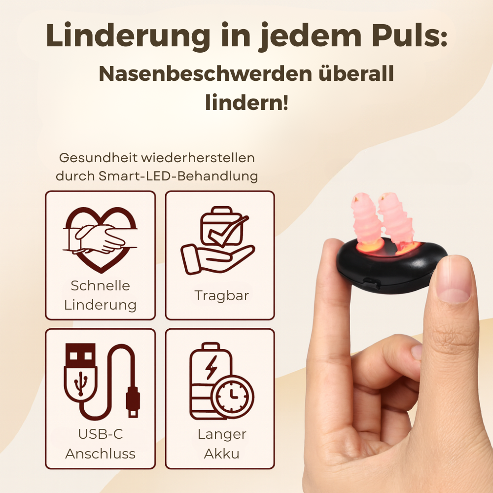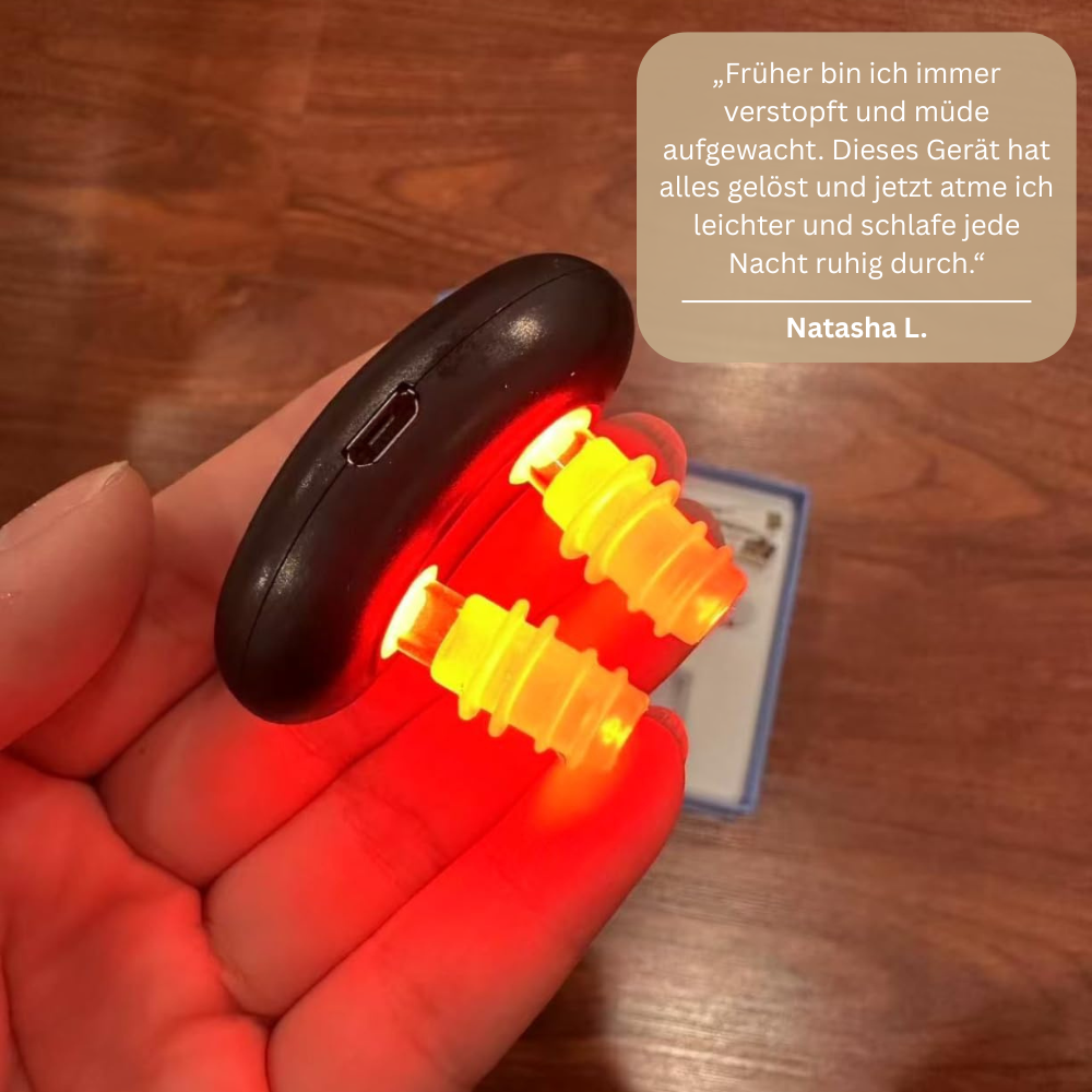 Unser innovatives Gerät nutzt fortschrittliche Lasertechnologie mit einer sanften Wellenlänge von 650 nm. Diese nicht-invasive Behandlung aktiviert die Blutzirkulation in der Nasenhöhle und bekämpft gezielt die Ursachen der Beschwerden.